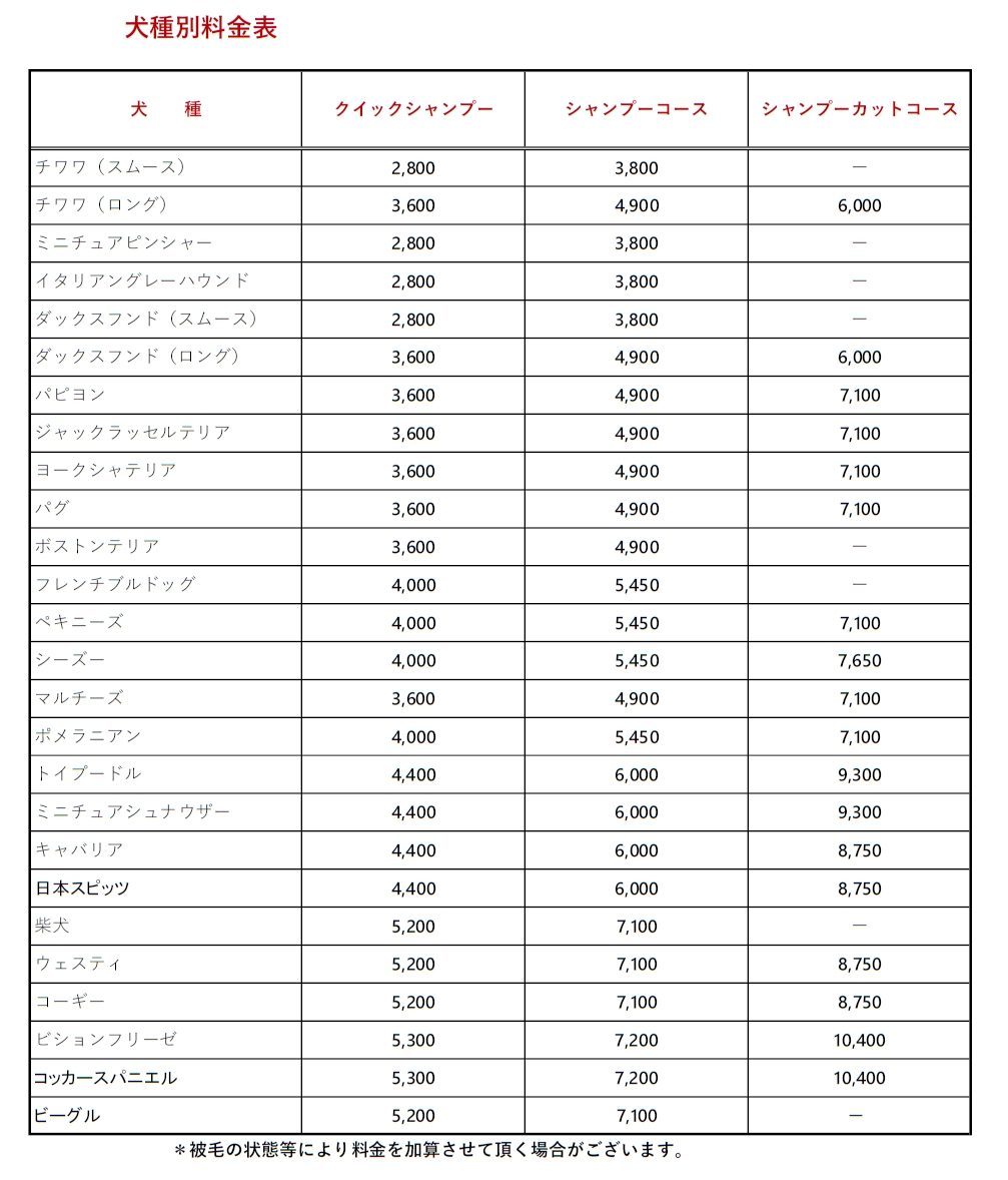 被毛の状態、毛量等や、体のサイズにより料金を加算させて頂く場合がございます。